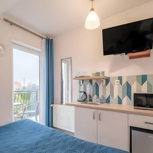 -apartament dwuosobowy z balkonem i aneksem kuchennym,łazienką,telewizorem