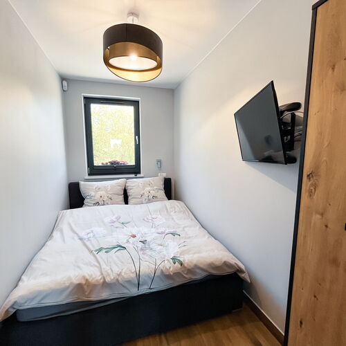 Parterowy apartament z dwoma oddzielnymi pokojami, przestronnym salonem z aneksem kuchennym (płyta indukcyjna, piekarnik, lodówka, naczynia i garnki) oraz łazienką z kabiną prysznicową. Na wyposażeniu: telewizor LCD i Wi-Fi.