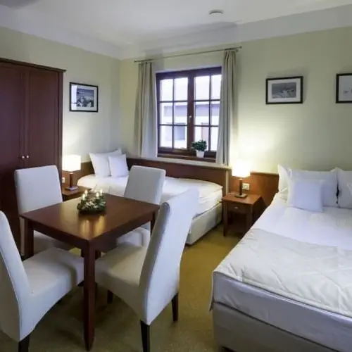 Do dyspozycji gości oddajemy komfortowe apartamenty każdy z dostępem do telewizji, Internetu bezprzewodowego i z własną łazienką.