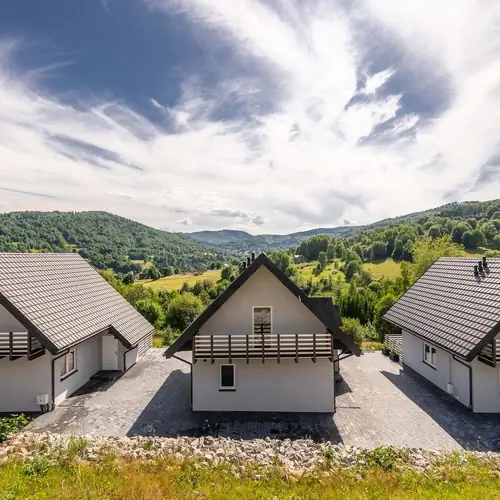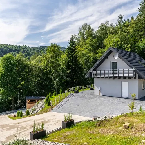 ZIELONE WZGÓRZE DOMKI CAŁOROCZNE-WYNAJEM oferuje trzy gustownie urządzone domki dla osób poszukujących noclegu w Zawoji