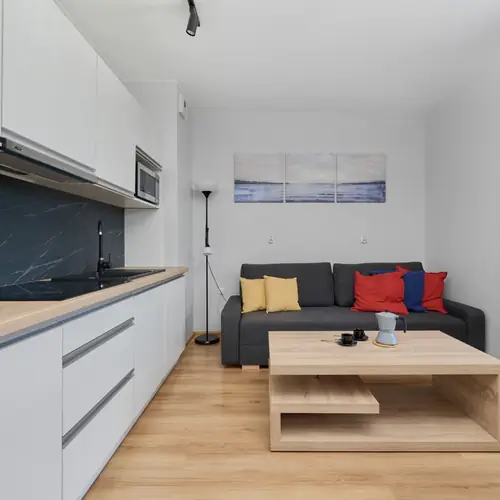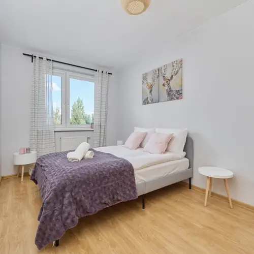 Ten wrocławski apartament o powierzchni 37 m² jest odpowiedni dla 4 gości. To świetne miejsce noclegowe dla rodzin preferujących spokój i wytchnienie od zgiełku miasta. Mieszkanie składa się dwóch pokoi - słonecznego salonu z aneksem kuchennym oraz wyjściem na balkon, sypialni z wygodnym łóżkiem małżeńskim oraz łazienki z prysznicem. Rozkładana sofa umieszczona w części dziennej zapewni udany relaks po długim dniu, jak i komfortowy sen. Na balkonie znajdują się meble ogrodowe, dzięki czemu Goście mogą rozkoszować się popołudniową filiżanką kawy na świeżym powietrzu. Nowoczesny wystrój wnętrza, z użyciem jasnej palety barw oraz przyjemnych dla oka dodatków, wprowadza miłą i domową atmosferę. Udogodnienia multimedialne w apartamencie obejmują nowoczesny telewizor oraz bezpłatne łącze wi-fi. W salonie znajdziemy również biurko umożliwiające Gościom komfortową pracę zdalną. Kompleksowe wyposażenie kuchenne gwarantuje pełną swobodę w przyrządzaniu smacznych, domowych posiłków, którymi można cieszyć się z rodziną przy jadalnianym stole znajdującym się w salonie. Podróżujący ze zwierzętami są mile widziani - miejsce to jest przyjazne pupilom. Ponadto, przed obiektem znajduje się ogólnodostępny, bezpłatny parking.