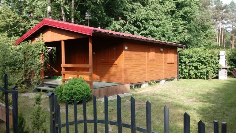Jest to domek parterowy, w jego skład wchodzi duży salon z kominkiem i aneksem kuchennym, telewizor, kanapa narożna z funkcją spania, stół i krzesła, szafa. Aneks kuchenny jest w pełni wyposażeniem w naczynia, garnki itp, lodówkę, kuchenkę gazową. Nowoczesna łazienka z prysznicem. Drugi pokój z dwoma pojedynczymi łóżkami, półkami i szafą. Na zewnątrz znajduje się duży, zadaszony taras, grill oraz meble ogrodowe. Domek jest ogrodzony drewnianym płotem, z metalową bramą wjazdową.
