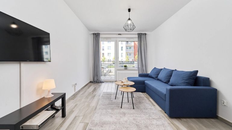 Ten stylowy apartament składa się z salonu z aneksem kuchennym, sypialni oraz łazienki z prysznicem. Może pomieścić 4 osoby. Piękny wystrój tworzy elegancką i przytulną atmosferę. W sypialni znajduje się bardzo wygodne łóżko małżeńskie. Pokój dzienny wyposażony jest w dwuosobową rozkładaną sofę i jest świetnym miejscem do wypoczynku, zwłaszcza po długim dniu zwiedzania słynnych atrakcji Wrocławia. Apartament posiada również balkon z meblami ogrodowymi - idealny na poranną filiżankę herbaty lub kawy na świeżym powietrzu. Dodatkowo aneks kuchenny wyposażony jest w wysokiej jakości sprzęt AGD, który pozwoli Ci na przygotowanie ulubionych posiłków. Jest tu piekarnik, lodówka, czajnik oraz płyta indukcyjna. Łazienka jest również w pełni wyposażona we wszystkie niezbędne rzeczy, takie jak pralka, co zapewni najbardziej komfortowy pobyt wszystkich gości. Dla ułatwienia rozpoczęcia każdego pobytu zapewniono bezpłatny zestaw kosmetyków, ręczniki oraz pościel.
