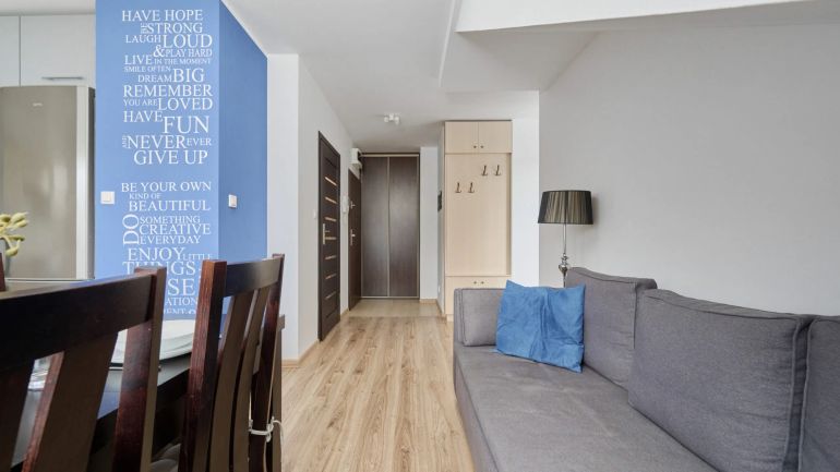 Ten przestronny apartament typu studio o powierzchni 32 m² może pomieścić 2 osoby. Idealny na wyjazd biznesowy lub romantyczny wypad we dwoje. Składa się z salonu z podwójną rozkładaną sofą, aneksu kuchennego, łazienki z prysznicem oraz balkonu. Wystrój apartamentu jest bardzo przytulny i domowy, spersonalizowany poprzez wykończenie subtelnymi dekoracjami i stylowymi meblami. Do dyspozycji Gości jest balkon z meblami ogrodowymi, na którym można zrelaksować się przy porannej filiżance herbaty lub kawy na świeżym powietrzu. Apartament wyposażony jest w telewizor SmartTV z płaskim ekranem (+ telewizja kablowa) oraz bezpłatną sieć Wi-Fi. Szeroka gama udogodnień łazienkowych i kuchennych (w tym pralka, zmywarka i sprzęt do prasowania) zaspokaja potrzeby naszych gości podczas podróży. Obiekt jest idealnym wyborem dla każdego, kto ceni sobie wygodę i funkcjonalność, ale także estetykę. Aby ułatwić rozpoczęcie każdego pobytu, zapewnione są bezpłatne przybory toaletowe, pościel i ręczniki.
