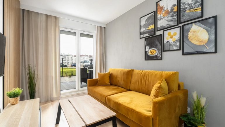 Ten Przestronny apartament o powierzchni 42 m² może pomieścić 4 osoby. Idealny na romantyczny wyjazd z drugą połówką lub podróż biznesową. Składa się z salonu z rozkładaną sofą, sypialni z podwójnym łóżkiem, aneksu kuchennego, łazienki z wanną oraz umeblowanego balkonu. Wystrój apartamentu jest bardzo przytulny i domowy, spersonalizowany poprzez wykończenie subtelnymi dekoracjami i stylowymi meblami. Apartament wyposażony jest w telewizor z płaskim ekranem oraz bezpłatną sieć Wi-Fi. Szeroka gama udogodnień łazienkowych i kuchennych (w tym pralka, zmywarka i sprzęt do prasowania) zaspokaja potrzeby naszych gości podczas podróży. Obiekt jest idealnym wyborem dla każdego, kto ceni sobie wygodę i funkcjonalność, ale także estetykę. Aby ułatwić rozpoczęcie każdego pobytu, zapewnione są bezpłatne przybory toaletowe, pościel i ręczniki. Apartament oferuje również dodatkową możliwość zakwaterowania dzieci: rodzice podróżujący z małymi dziećmi na życzenie otrzymają łóżeczko dziecięce. Goście podróżujący samochodem, mogą skorzystać z parkingu podziemnego.